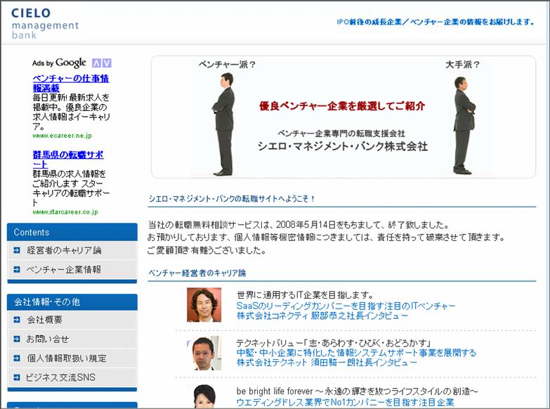 シエロマネジメントバンクという会社様のインタビューに答えまして、その会社のWebのトップページに載っています。
