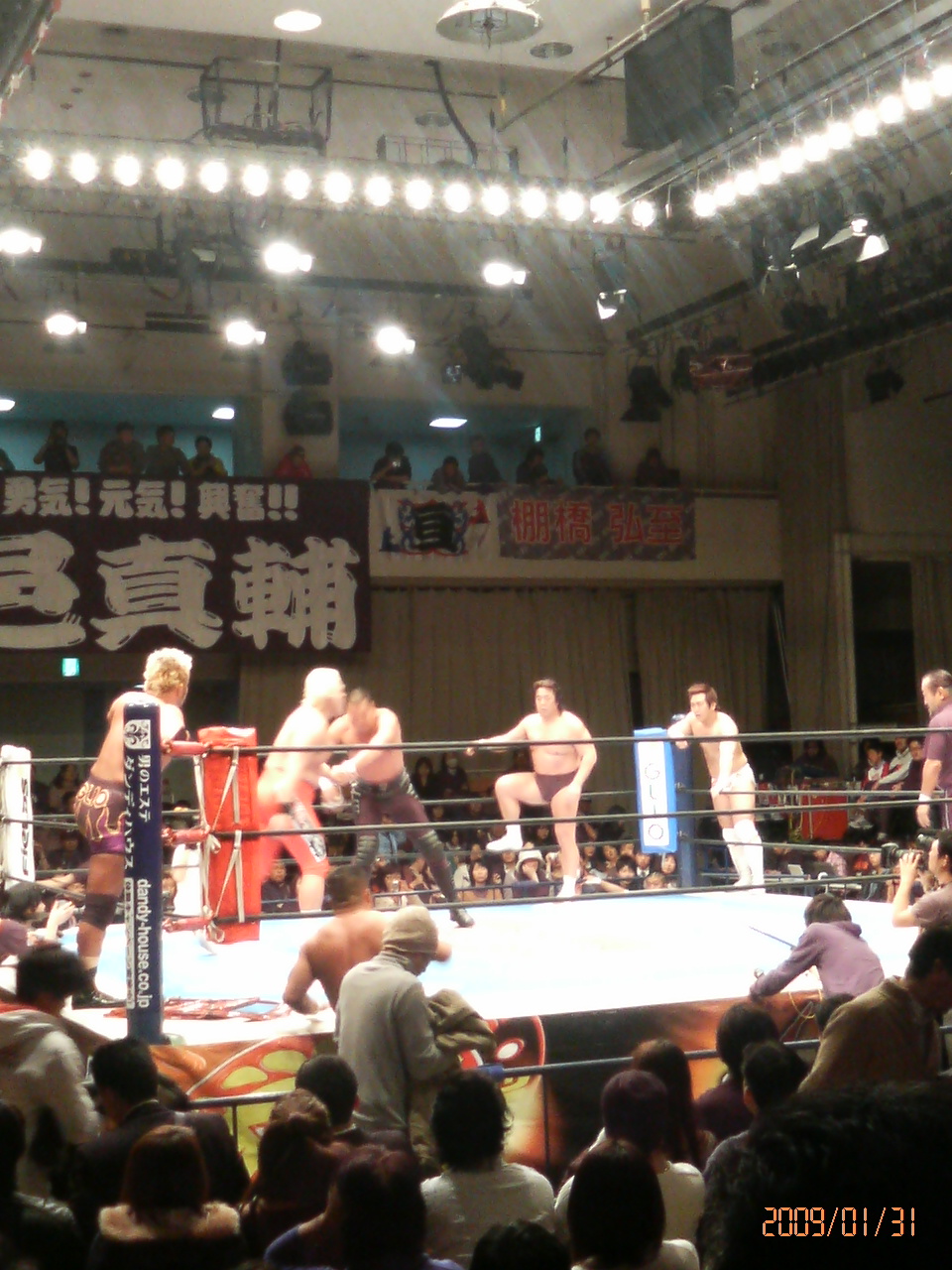 自分は京都で近くでプロレスなんてやってなかったし、あくまでテレビの中の世界な訳だったのだけれど、それが東京だとこうして近くで見れて、都会ってすごいなぁ…と田舎モン感覚で若干目がウルっと。。。(どんな感傷や。。。)