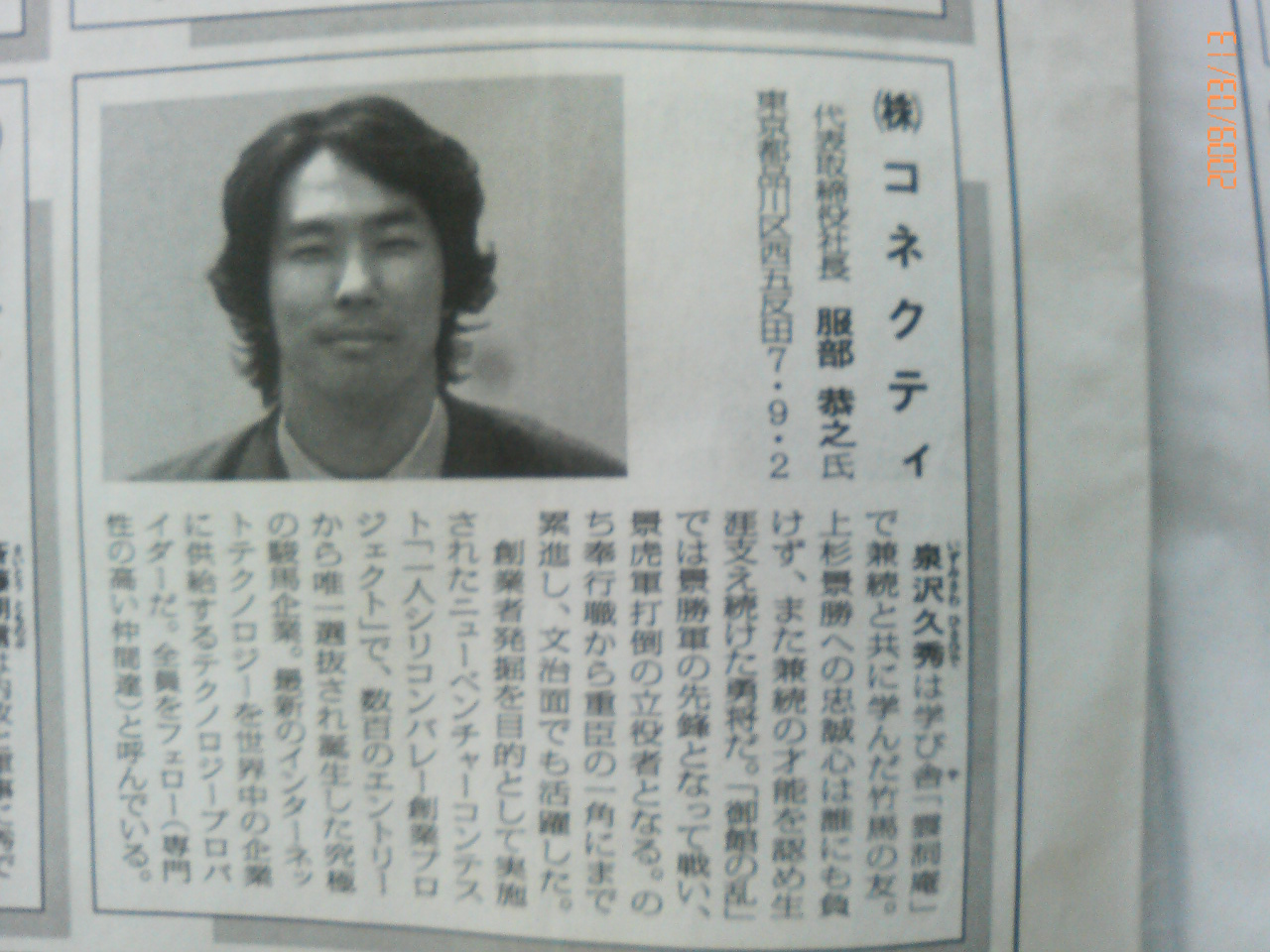 NHK大河ドラマ「天、地、人」の主役、直江兼継が生きた時代における戦国武将・名将をモチーフに各会社の紹介がされる企画でして、